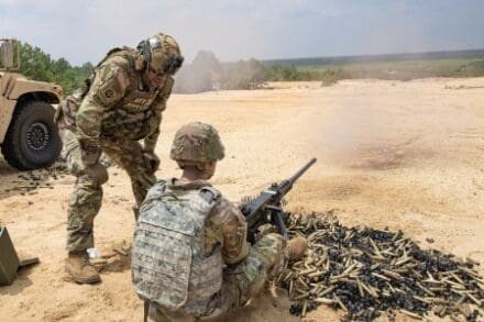 Soldiers attend the Master Gunner School at the Maneuver Center of Excellence, Fort Moore, Georgia, where they take a 20-day, four-part course known as “common core” before attending Master Gunner School. At common core, students learn how to direct fire and weapons training to raise the lethality of fires while minimizing the effects on friendly forces and bystanders. Soldiers will also learn to formulate their own mounted, machine gun unit training plan and proficiency gunnery training programs based on commanders’ intent.