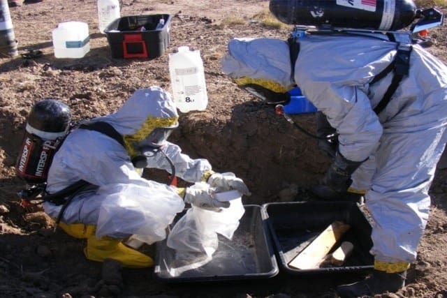 What brought this need home for Malone is what happened at a field operations site at Holloman Air Force Base in New Mexico. Recovery team members encountered E-61 bomblets. “The CBARR project manager for this field operation, George Noya, came to me because he knew that I had done some extensive research on bioweapons some years back,” Malone said. “That provided me with some good background, but I also got help from a true CBC expert in this area, Chris Whalley, a Center subject matter expert in biological weapons.”
