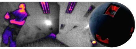 Unlike other systems that rely on moving PTZ camera motors or bulky, expensive arrays of cameras stitched together to claim panoramic coverage, the Pit Viper 360 (named after rattlesnakes and other serpents that can sense thermal spectra) combines six thermal imaging cores and an inertial measurement unit (IMU) to create a truly portable, throwable, stabilized panoramic thermal video camera – all in a package the size of a grapefruit.