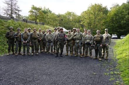 “I had so many hands go up and there were more who wanted to go,” said Maj. Brandon McFarlane, Headquarters U.S. Army Europe and Africa G3 Civil Affairs Division, about the Landeskommando invitation. “I’ve done the march portion of the German Armed Forces Proficiency Badge (GAFPB) before. It was tough, but we did it, just like we are going to do the Schützenschnur as the next step towards the GAFPB.”