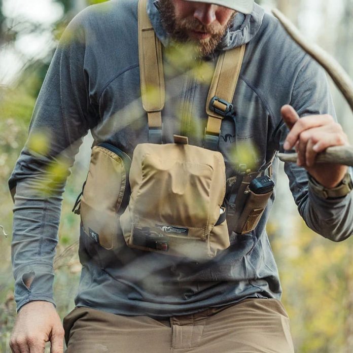 Constructed of 3-Layer HydraShield waterproof fabric, the Sentinel Bino Harness offers room for your optics in central pocket as well as other items in the two elastic side pockets.