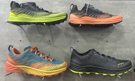 This trail running line includes the Citux model which is seen here at the top. It’s offered in Men’s and Women’s versions and is designed for training as well as trail running on steep, fast trails. Citux features a full-length rubber outsole and Dyneva High Rebound Compound, Charger Plate, and EVA shell.