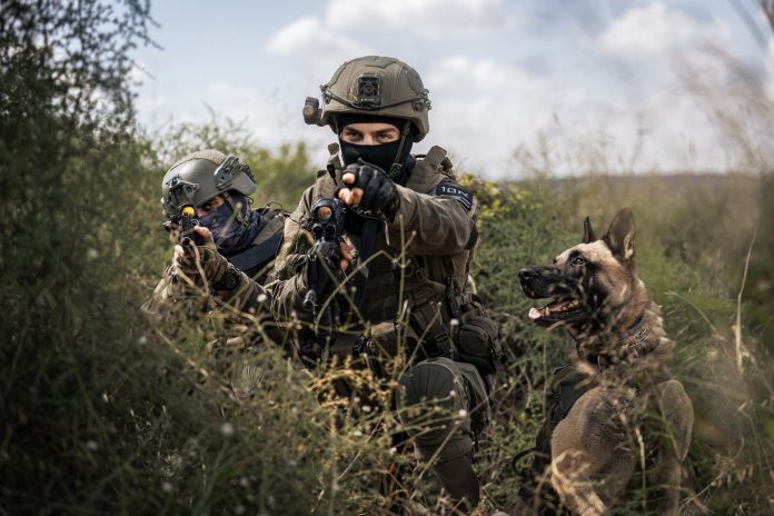 K9 operational dog and its human handler – Illustration (Credit: Israel Defense Forces)