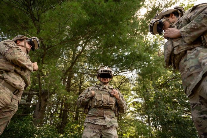 Soldiers assigned to 1st Battalion, 87th Infantry Regiment, 1st Brigade Combat Team, 10th Mountain Division , conduct mission planning operations during the Integrated Visual Augmentation System (IVAS) 1.2 Phase One User Assessment held by Program Executive Office (PEO) Soldier on Fort Drum, August 23. The user assessment was designed to collect Soldier feedback on the IVAS 1.2 prototypes.