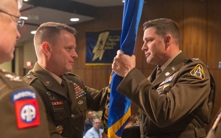 Brig. Gen. Christopher Schneider officiated the exchange of responsibility of PM SL from the outgoing Program Manager Col. Scott Madore to Col. Jason Bohannon.